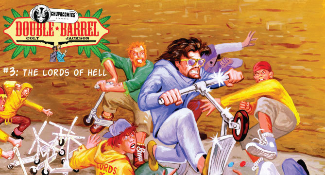 Our heroes Colt Buckshot & Jackson Dupagne, DOUBLE BARREL, have seen the end of the world. What role do the rascally stoners play in the fall of humanity? The pair set out for help from the only mystic pervert who can help, but what despicable acts will they have to perform to win the favor of the great: Lo Hung!?!